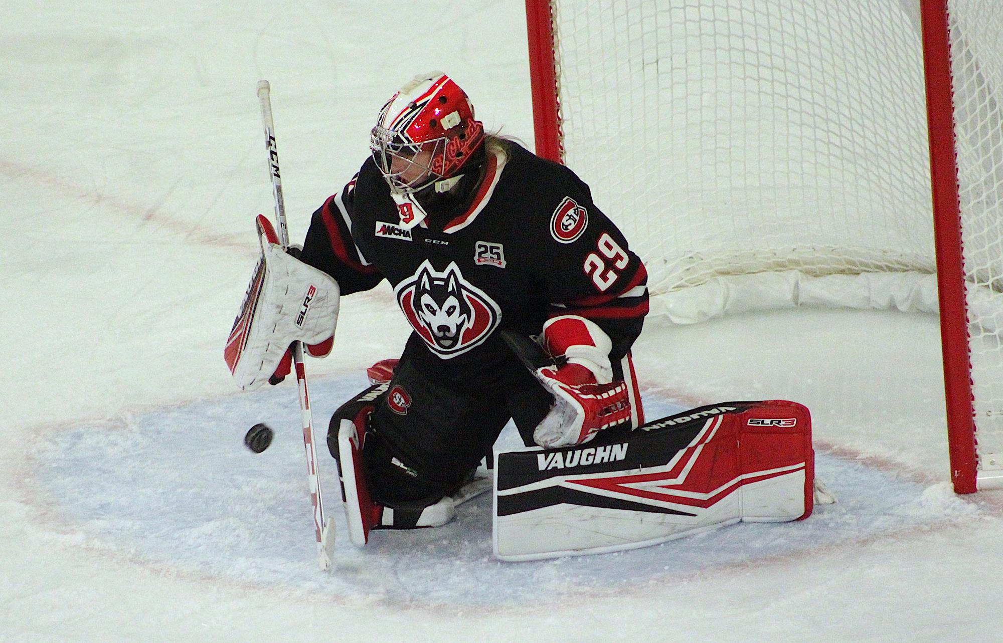 Season: Transferred to St. Cloud State for her junior campaign and quickly formed a formidable goaltending tandem with Sanni Ahola, appearing in 20 games with 17 starts…went 9-7-1, becoming the first Huskies goaltender to produce a winning record with at least 10 starts since Ashley Nixon went 13-10-8 in 2009-10…earned wins over RPI, St. Thomas, Bemidji State, Lindenwood, New Hampshire, Wisconsin and Minnesota State…broke the program’s single-season shutout record with five…boasted a 2.46 goals against average with a .923 save percentage…ranked No. 25 in the NCAA in goals against average and No. 19 nationally in save percentage…was fifth in the WCHA in GAA and fourth in save percentage…blanked RPI with a 17-save shutout on September 30 in her Huskies debut…stopped 12 of 13 shots faced at Ohio State on October 8…piled up 45 saves against Wisconsin on October 14…added 32 saves against Minnesota on October 21…shut out St. Thomas with 20 saves on October 29…made 28 saves on 29 shots at Bemidji State on November 5…turned away 23 of 25 shots against Minnesota Duluth on November 11…made 27 saves in a 4-2 win at Lindenwood on November 26…posted 13 saves in a win at St. Thomas on December 3…made 15 saves at Minnesota on December 9…recorded 35 saves against Minnesota the following night…began the new year with a 24-save shutout of New Hampshire on January 6…turned away 22 of 24 shots at Minnesota State on January 13…posted 31 saves against Ohio State on January 20…blanked Bemidji State with 32 saves on January 27 in a 2-0 win…anchored the Huskies’ 1-0 win over Wisconsin at the Kohl Center with a 39-save shutout on February 3, earning WCHA Goaltender of the Week honors for her efforts…stopped 43 of 44 shots in a 1-1 draw at Minnesota Duluth on February 11…turned away 21 shots in a 6-3 win over Minnesota State on February 17…made 32 saves in a 1-0 loss at Minnesota Duluth on February 24 in the WCHA Quarterfinal…added 19 saves on 21 shots the following evening…invited to the 2023 USA Hockey National Goaltending Camp over the summer and participated in the 2023 USA Hockey Women’s National Festival…